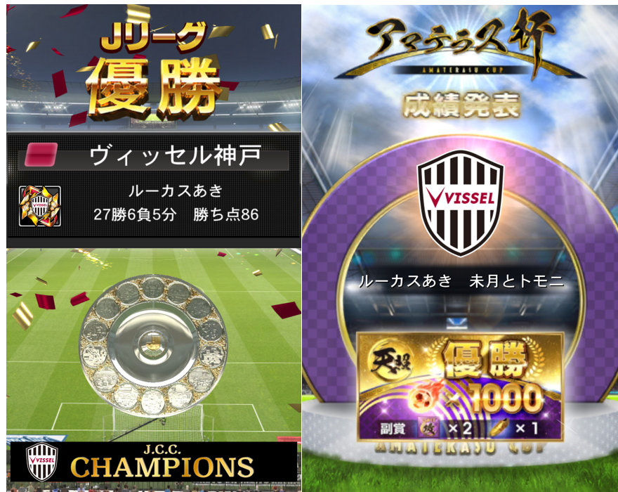 Jリーグクラブチャンピオンシップ(Jクラ)のアプリのヴィッセル神戸代表(最多優勝者)。